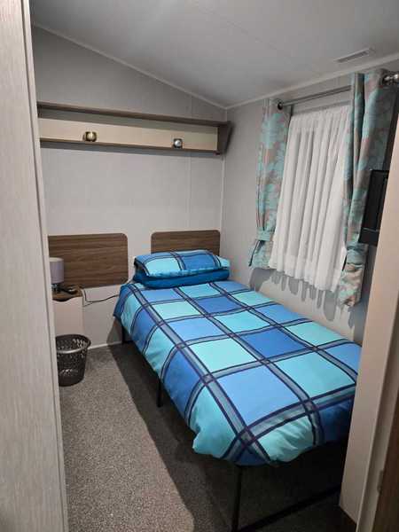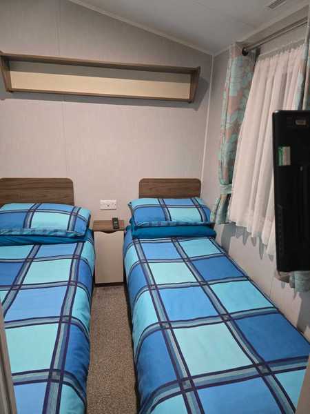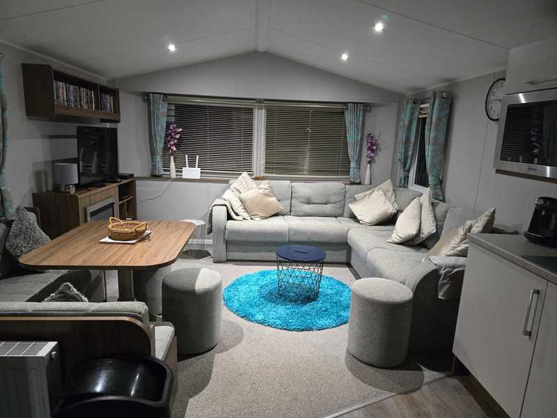 The caravan features central heating and double glazing for year-round comfort, with an electric fire in the lounge for those cozy nights in.