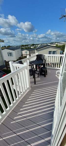 Small decking area with table and chairs